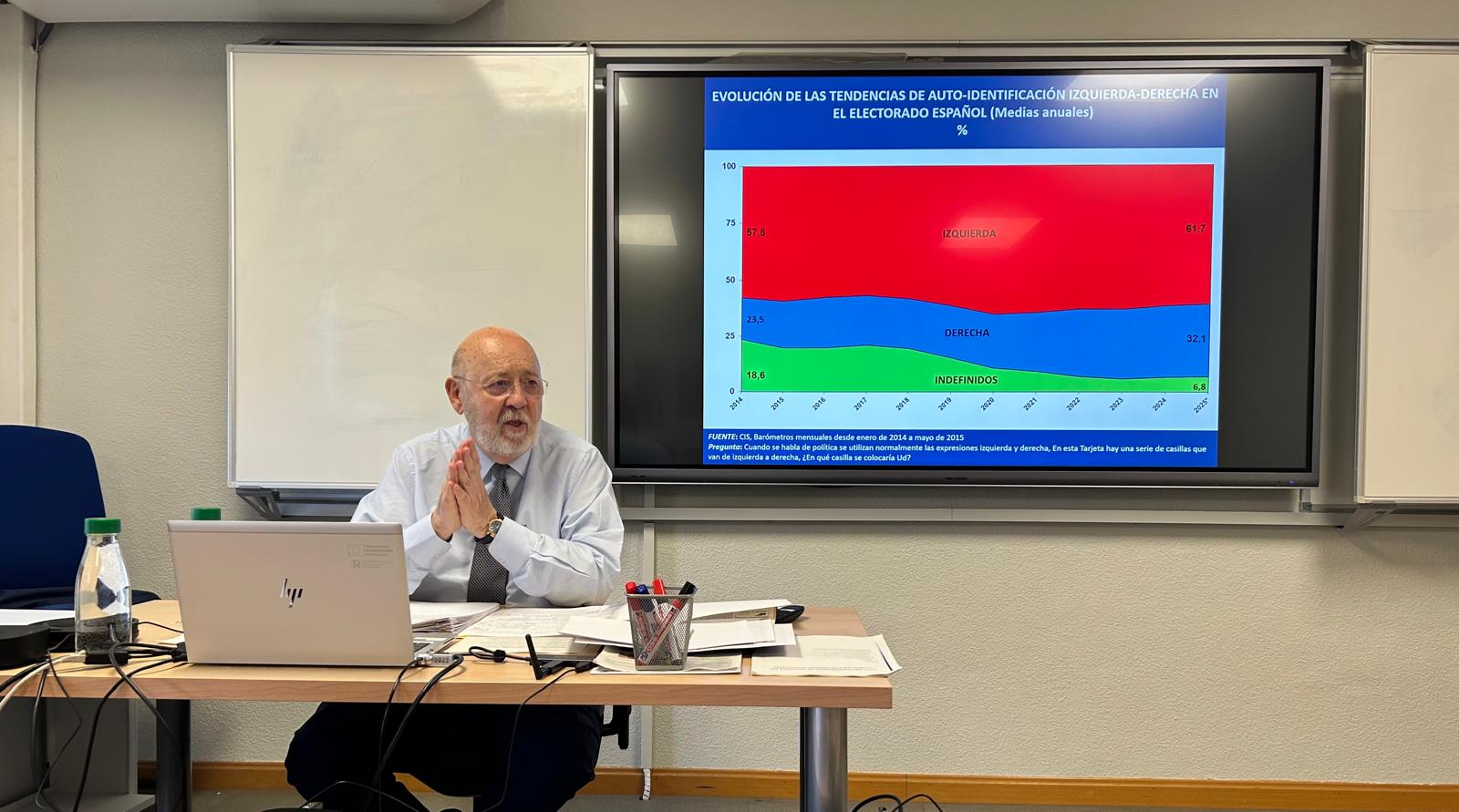 El president del CIS, José Félix Tezanos, ha impartit una conferència als alumnes del curs de postgrau del centre com a part de la seva formació.