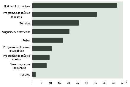 - Sólo a aquellos que declaran ver la televisión: N = 2.415 o escuchar la radio: N = 1.816; multirrespuesta