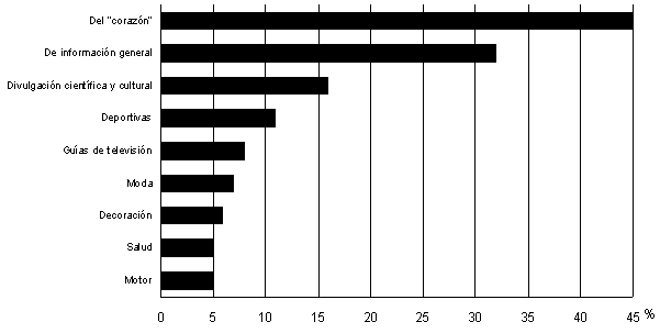 En el epígrafe Mis lecturas favoritas presentamos algunos datos acerca de los hábitos de lectura de los españoles. Un 38% de los entrevistados declara leer la prensa tres o más veces por semana. Un 38% de los que leen la prensa, prefieren los periódicos deportivos, entre los semanarios, la prensa del "corazón" es la más leída. En cuanto a lectura de libros, un 59% los lee raramente, nunca o casi nunca. De entre quienes los leen con bastante frecuencia (19%) son mayoría las mujeres, los jóvenes y los habitantes de las grandes ciudades. En cuanto a las preferencias destaca la lectura de novelas. Incluimos además algunos datos relativos a la difusión de las publicaciones periódicas y la producción editorial en España.