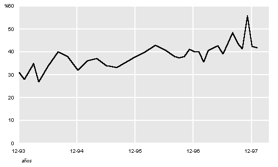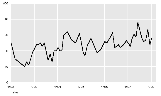 • Nota: excluidos los casos en que no procede la respuesta en los años 1996 a 1998