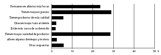 w De las siguientes razones, ¿cuál le parece más importante para comprar en grandes almacenes?