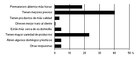 Razones para la elección de los distintos tipos de establecimientos comerciales
