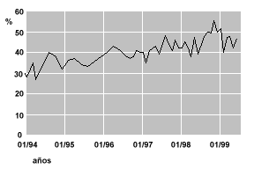 Porcentaje de entrevistados que declaran que la situación política actual es "muy buena" o "buena".