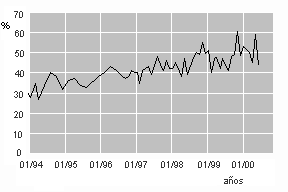 Iniciamos el último boletín de este año 2000 con algunos datos sobre las opiniones de los españoles ante la Unión Europea. Un 77% de los entrevistados está a favor de esta organización supranacional a la que España pertenece desde el año 1986. Considera un 55% que la adhesión ha sido beneficiosa para nuestro país en general; por sectores económicos, el turismo y el comercio son los que un mayor número de personas consideran que se han beneficiado mucho o bastante.