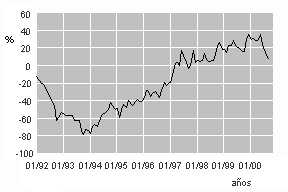 Diferencia entre los que piensan que la situación económica es "muy buena" o "buena" y los que piensan que es "mala" o "muy mala".