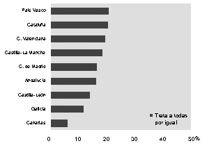Un tercer bloque se ha dedicado a la percepción de las Diferencias Regionales. El 71% de los españoles cree que el Gobierno favorece más a unas comunidades autónomas que a otras, declarándose Cataluña como la Comunidad Autónoma más favorecida, seguida de Andalucía. En un análisis por comunidades, se observa que los catalanes opinan que su comunidad está bastante favorecida, pero menos que Andalucía, mientras que los andaluces opinan que Cataluña es la más favorecida seguida del País Vasco.