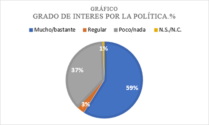 El 58,9% de los españoles dicen que la política les interesa “mucho o bastante”, mientras que al 37,3% les interesa “poco o nada”.