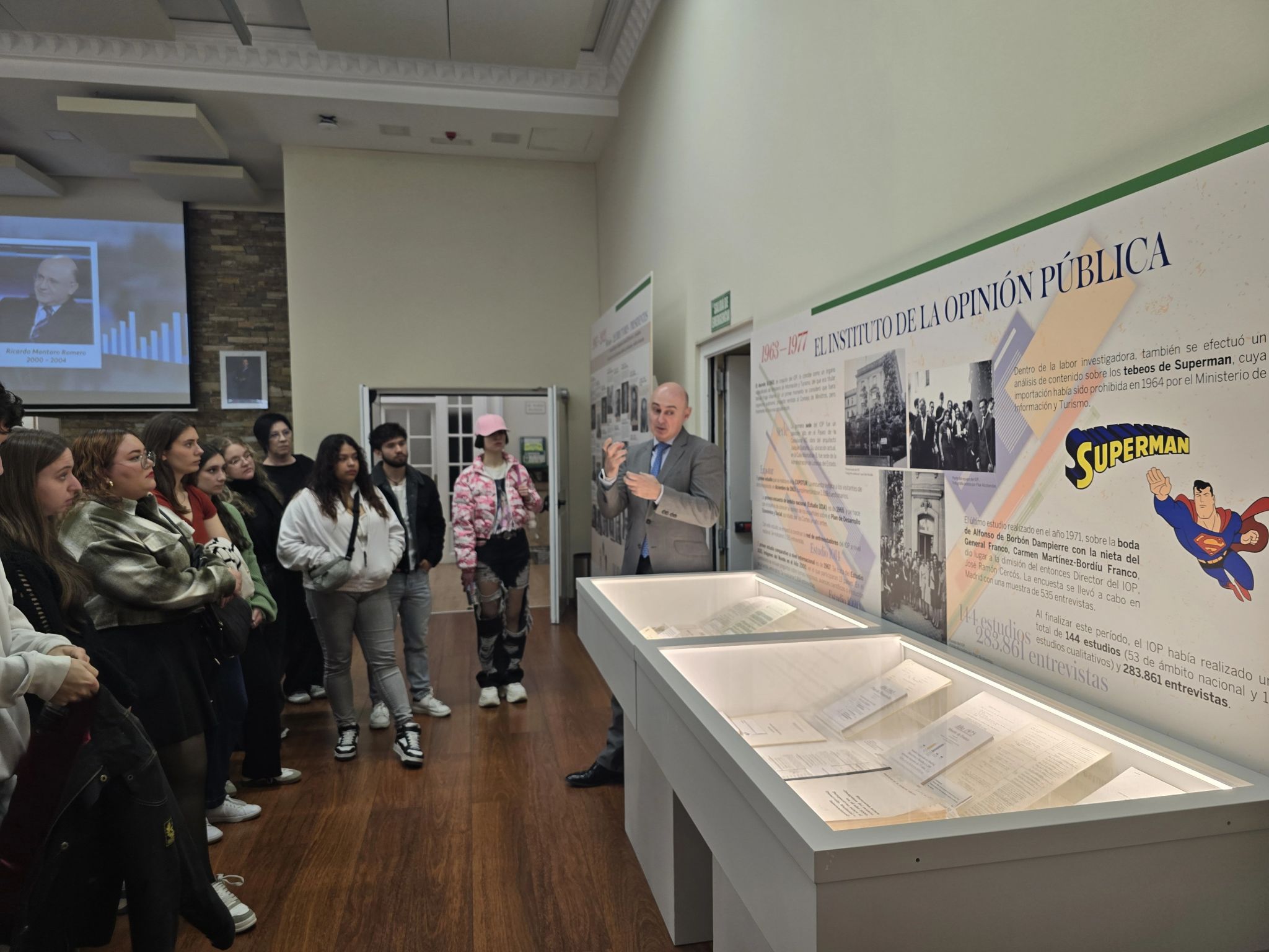 El jefe de Gabinete, Óscar Iglesias, ha enseñado al alumnado la exposición con las encuestas más significativas que se han realizado en el centro a lo largo de los años, así como las instalaciones donde se realizan estudios cualitativos, la biblioteca y los diferentes departamentos.