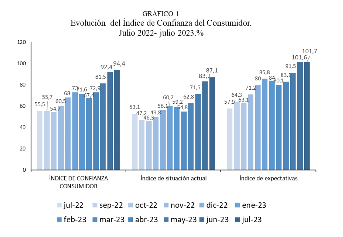 - El Índice de Confianza del Consumidor incrementa 2 puntos respecto a junio y alcanza el mejor resultado del año