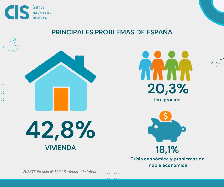 Todo lo relacionado con el acceso a la vivienda se percibe ya como el principal problema que existe actualmente en España según un 42,8% de los encuestados por el Barómetro de febrero del Centro de Investigaciones Sociológicas.